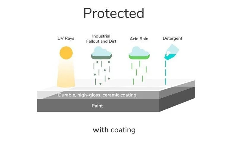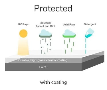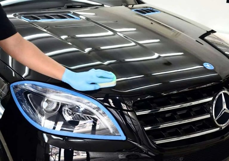 Ceramic coating is a liquid polymer applied to your vehicles exterior. Once cured, it creates a protective, hydrophobic layer that enhances shine, clarity, and makes maintenance effortless.